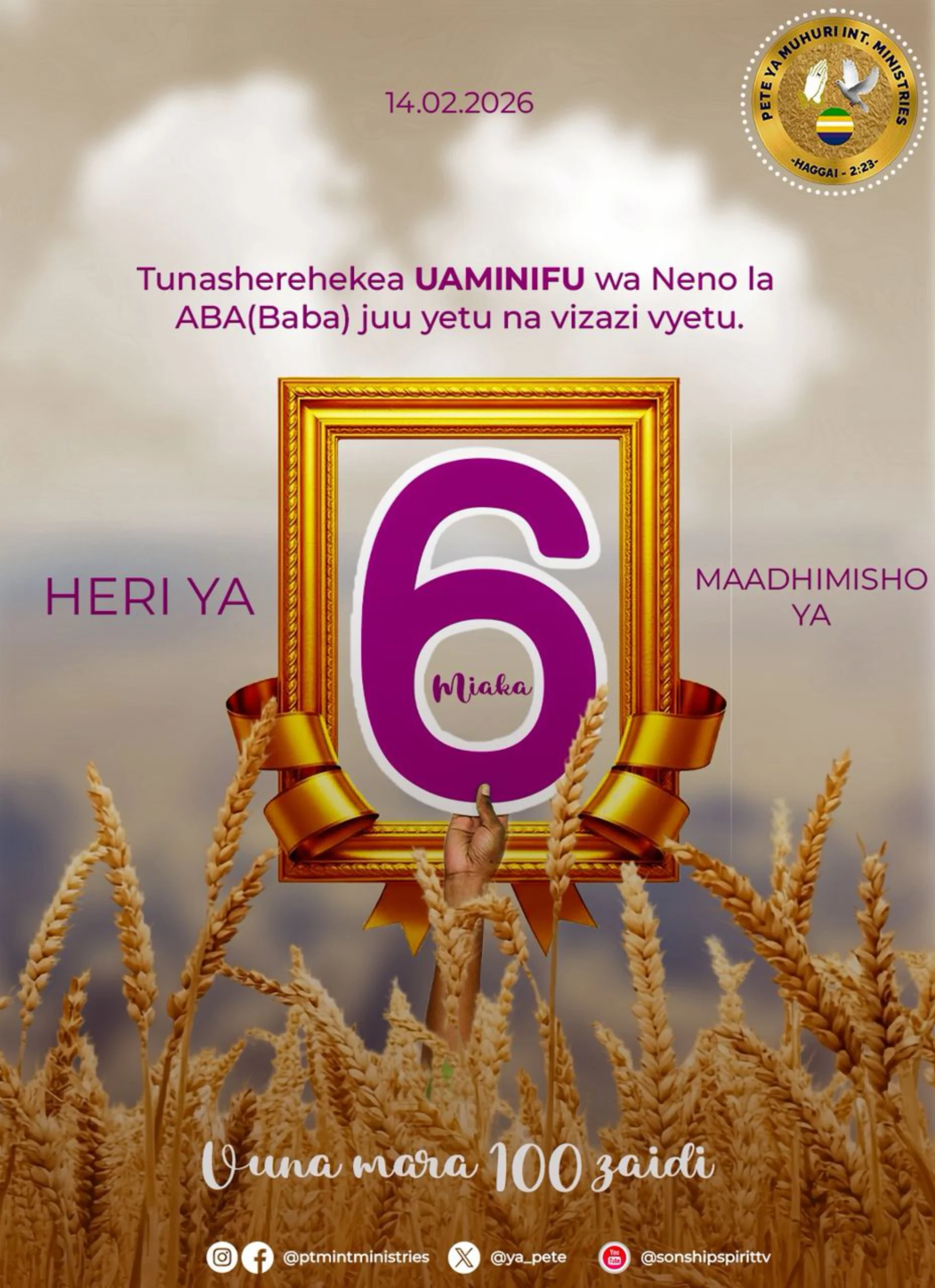 Celebrating anniversaries of PETE YA MUHURI Int'l MINISTRIES. (HAGGAI 2:23)